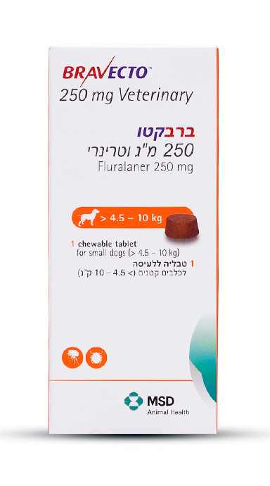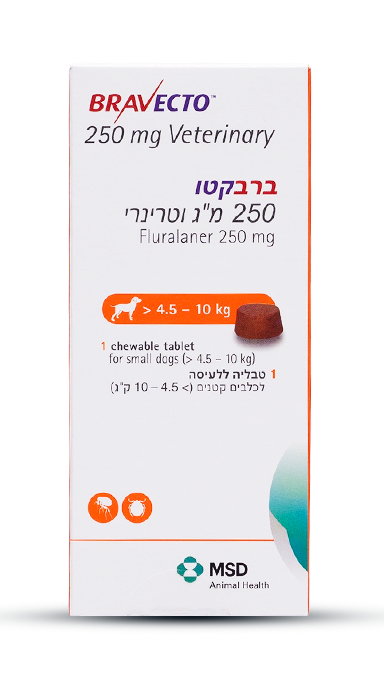 טבליית BRAVECTO לעיסה – פתרון רפואי מתקדם והדור הבא למניעת פרעושים וקרציות בכלבים קטנים. הטבלייה נספגת במהירות בדם ומשחררת באופן סיסטמי את החומר הפעיל Fluralaner לאורך עד 12 שבועות, מבטיחה הגנה ממושכת ומונעת חזרה של פרעושים וקרציות. ניתנת בלעיסה בטעם טעים שמועדף על כלבים ברוב המקרים, ומפשטת את הטיפול לעומת טיפולים חיצוניים. מתאימה לשימוש בכלבים קטנים ברמות פעילות שונות ובכל סוגי הפרטים (כולל בעיות עור וטפילים חיצוניים).