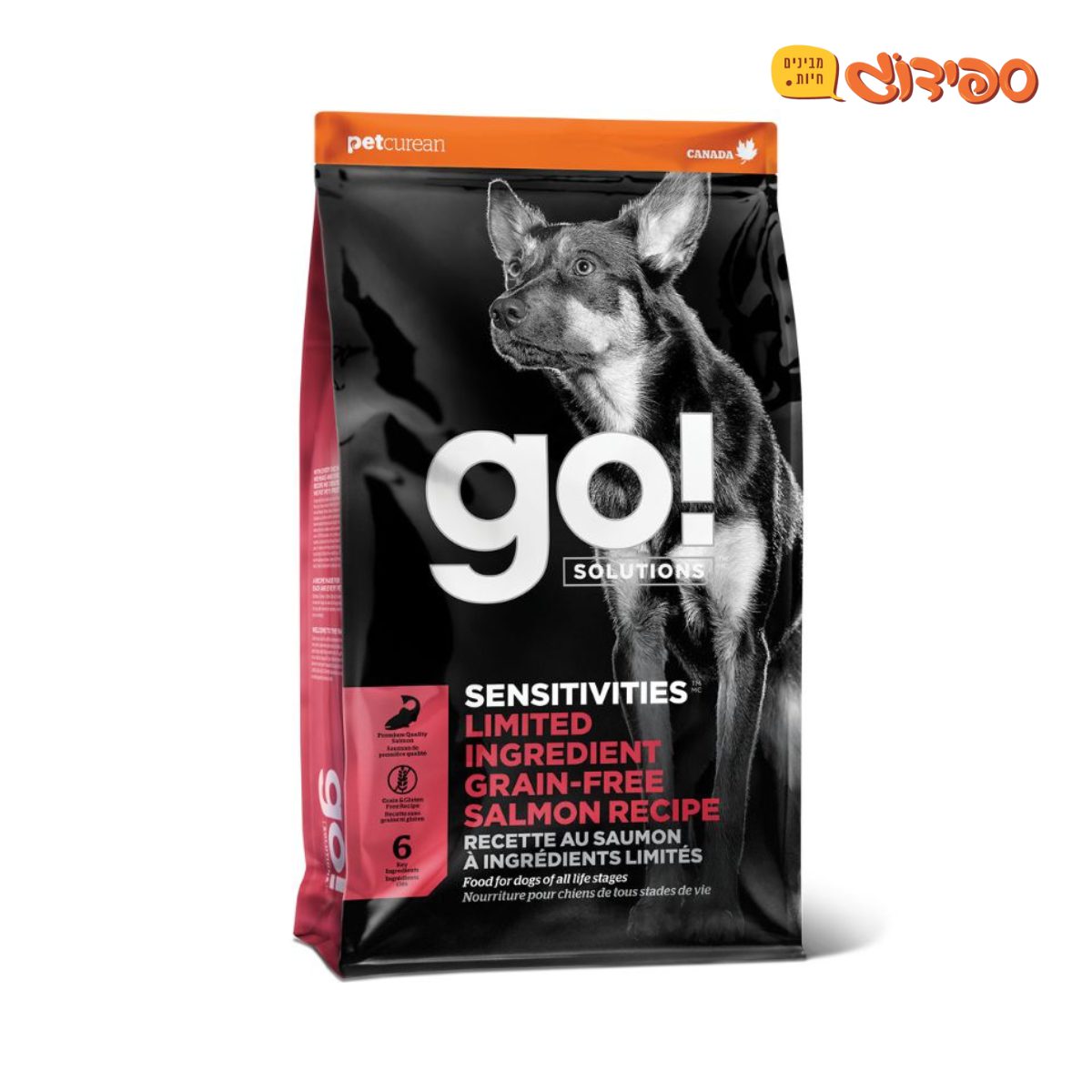 סדרת גו סנסטיביטיס מציעה מזון ללא דגנים ועם חלבון יחדני על מנת לספק מענה לכלבים בעלי רגישויות למזון.