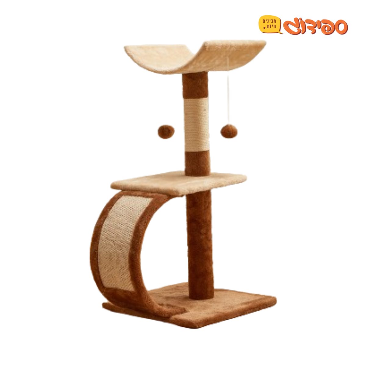 מגרדת לחתול 2 קומות בצעים חום וקרם גובה 77 ס"מ רוחב 35 ס"מ עומק 50 ס"מ