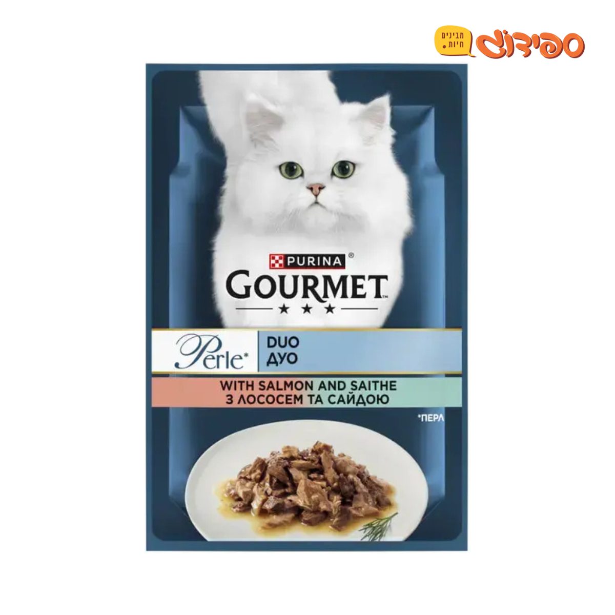 פאוץ פרל גורמה לחתול נתחי סלמון ודג לבן 85 גרם