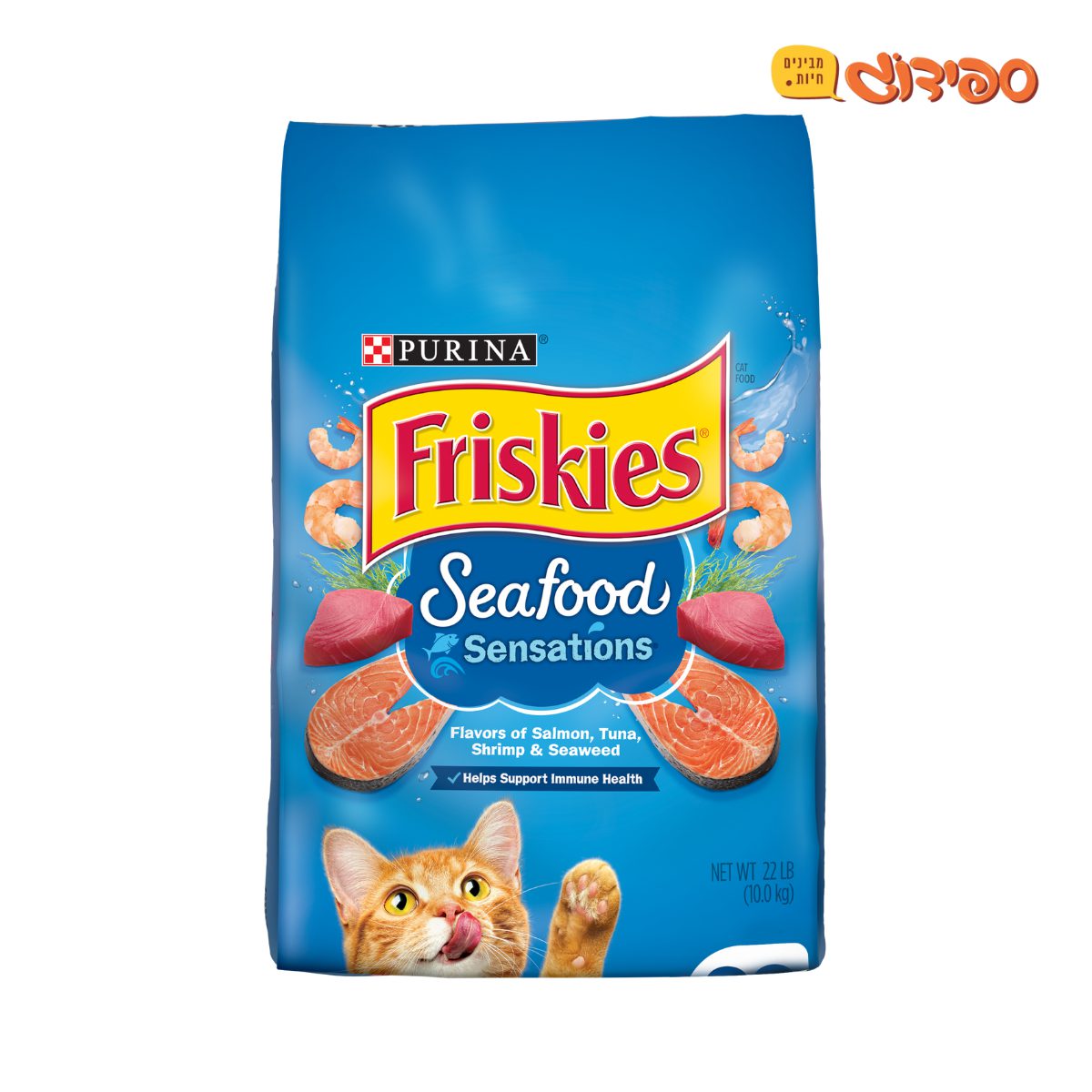 פריסקיס כחול מזון יבש לחתול מבית פורינה, בטעם דג אוקיינוס, סלמון, טונה, שרימפס וסרטן.