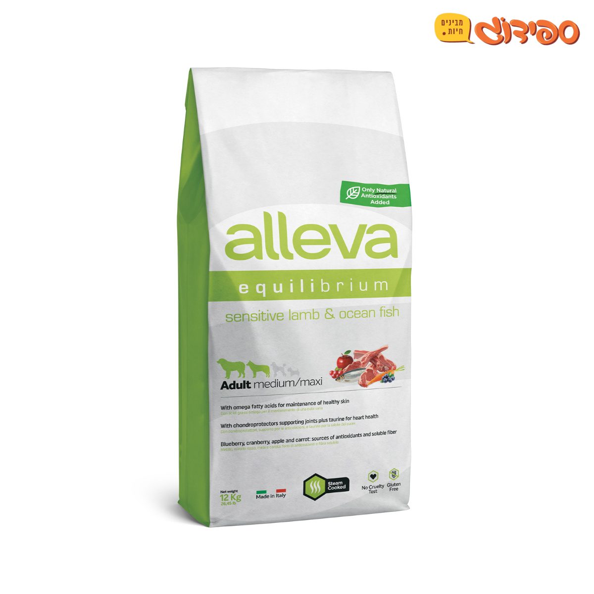 אלווה אקווליבריום סנסטיב כבש ודגי אוקיינוס : מזון מלא לכלבים בוגרים עם מערכת עיכול רגישה