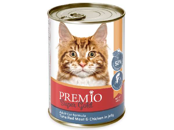 פרמיו סופר גולד שימורי מזון משלים לחתול בוגר עם בשר טונה אדומה בציפוי עוף בג'לי