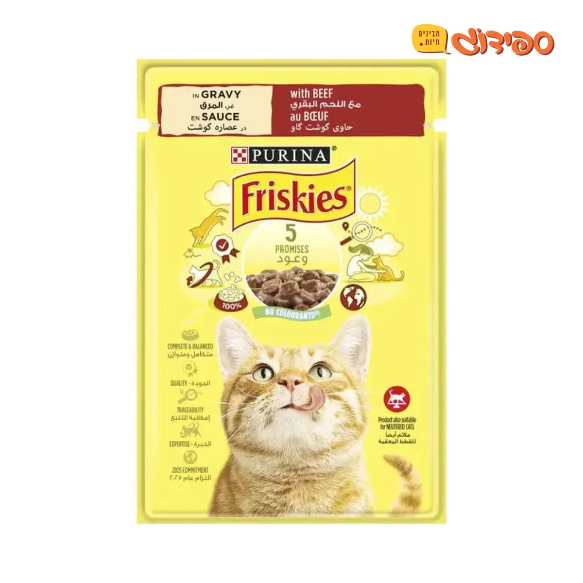 פריסקיז שימור בפאוץ' לחתולים בטעם בקר עשיר ברוטב שחתולים אוהבים