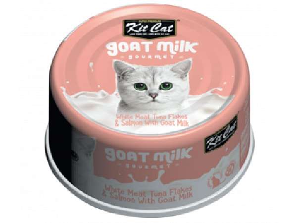 קיט קט שימור חלב עז טונה וסלמון 70 גר' קיט קט שימור לחתול חלב עז טונה וסלמון מושלם לחתולים שיש להם קיבה רגישה וסובלים מכל סוג של בעיות עיכול.