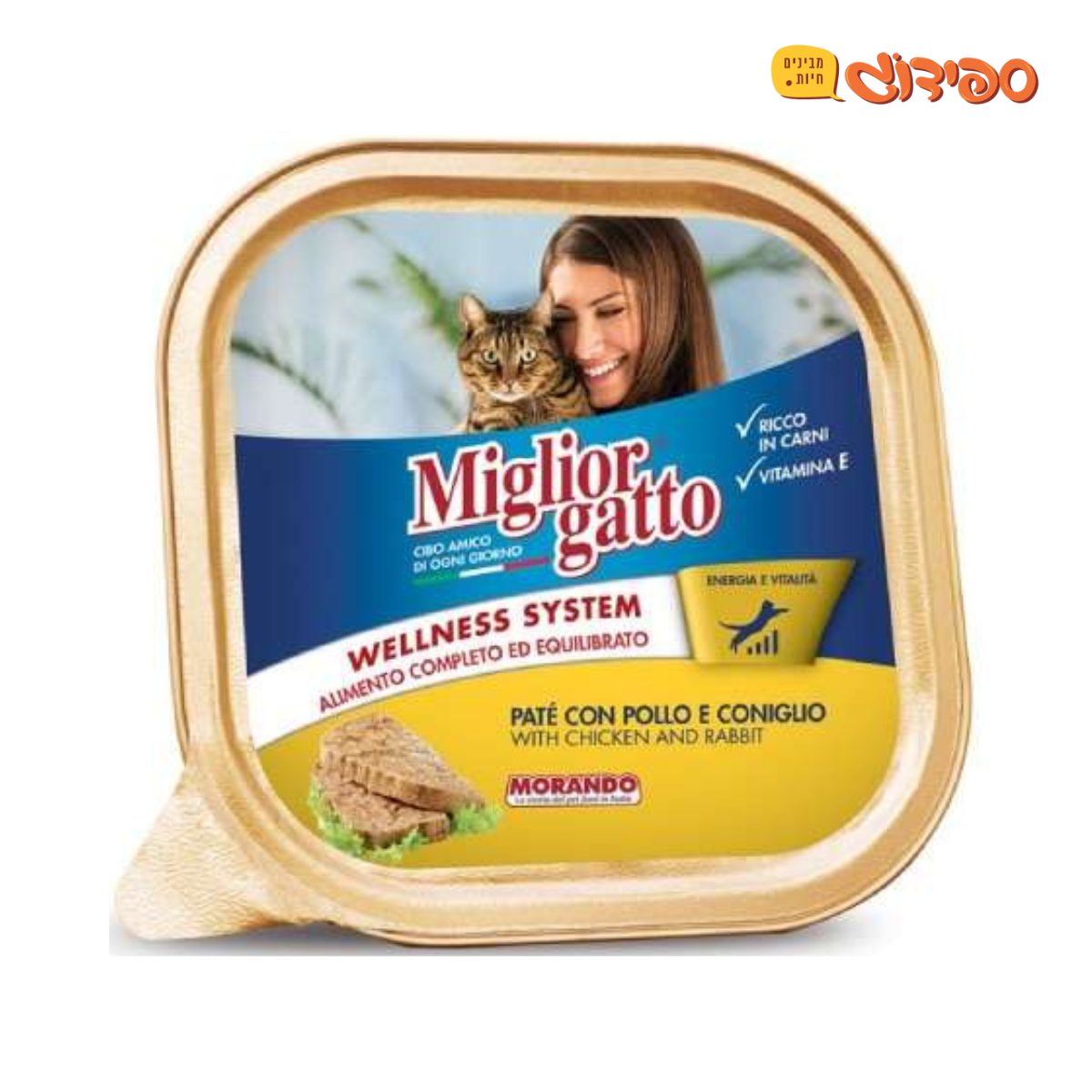 מעדן מיגליור לחתול עוף וארנבת 100 גרם