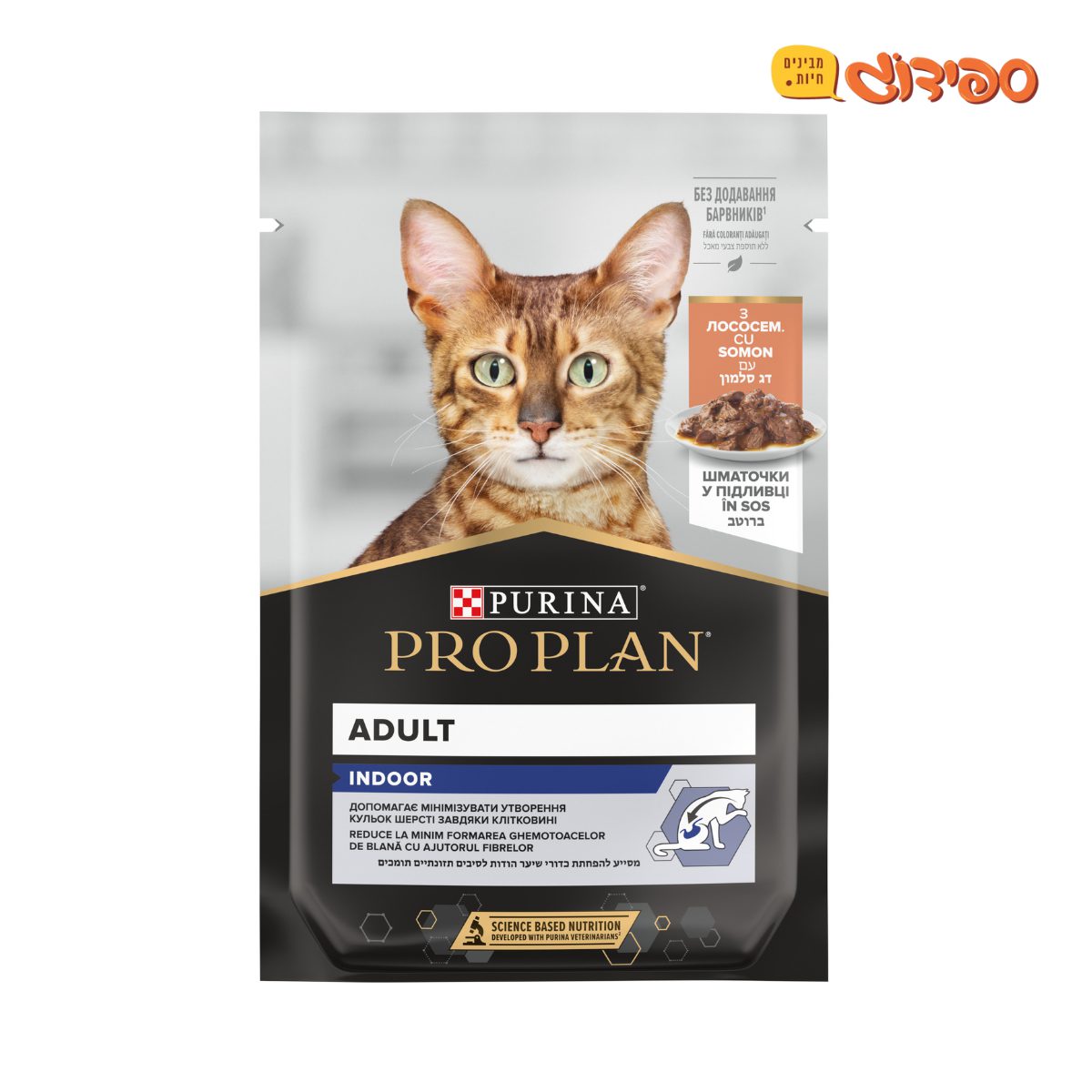 שימור בפאוץ' פרו פלאן מותאם לחתולי בית בוגרים, מונע היווצרות כדורי שיער במעיים .