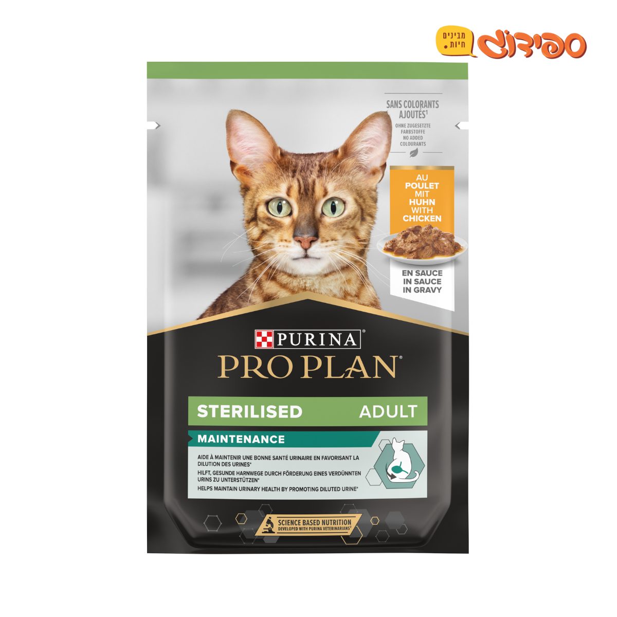שימור בפאוץ' פרו פלאן המותאם לחתולים לאחר עיקור או סירוס. השימור תומך בבריאות מערכת השתן .