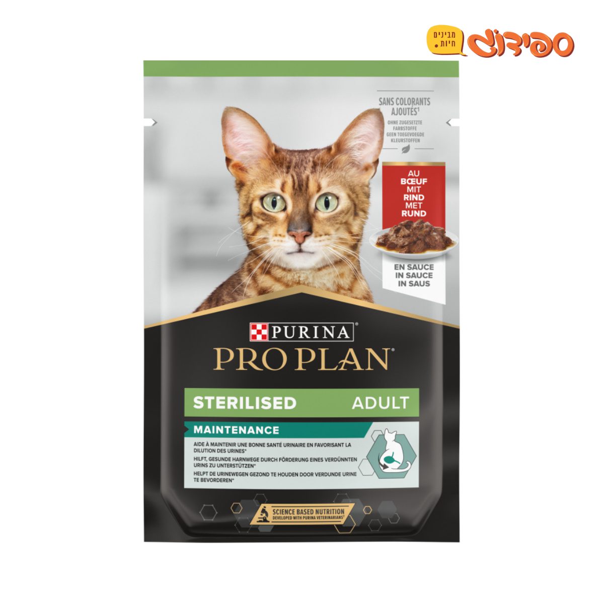 שימור בפאוץ' פרו פלאן המותאם לחתולים לאחר עיקור או סירוס. השימור תומך בבריאות מערכת השתן .
