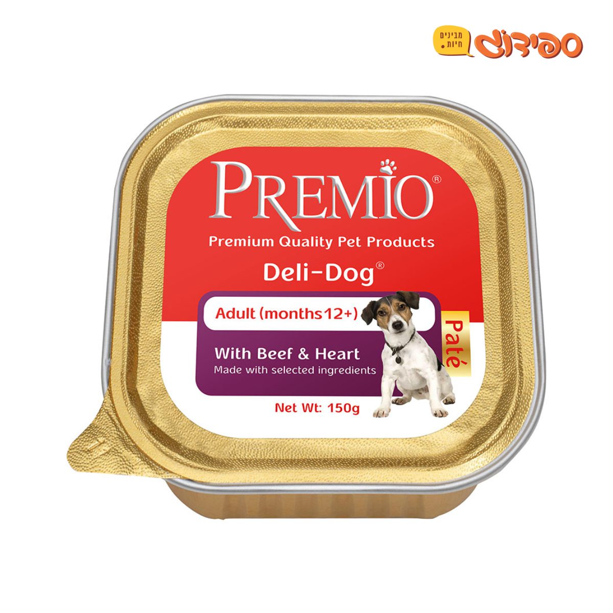 שימור מלא במרקם פטה לכלב בוגר על בסיס בקר ולבבות