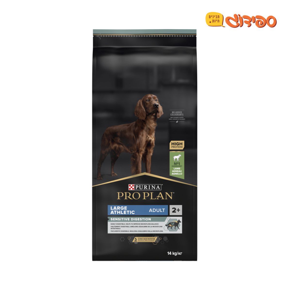 מזון לכלבים בוגרים (גיל שנה עד 7 שנים) תוצרת חברת פרו פלאן, המזון מיועד לכלבים מגזע גדול, על בסיס כבש ואורז