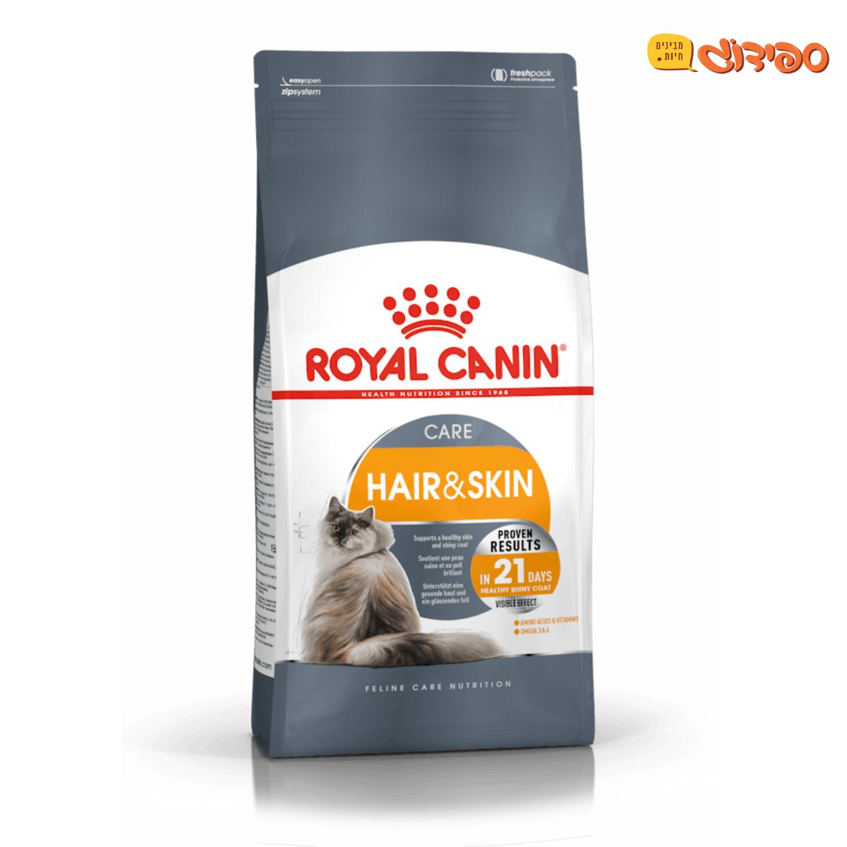 מזון יעודי מבית רויאל קנין עבור חתולים מגיל שנה לתמיכה בבריאות העור והפרווה.